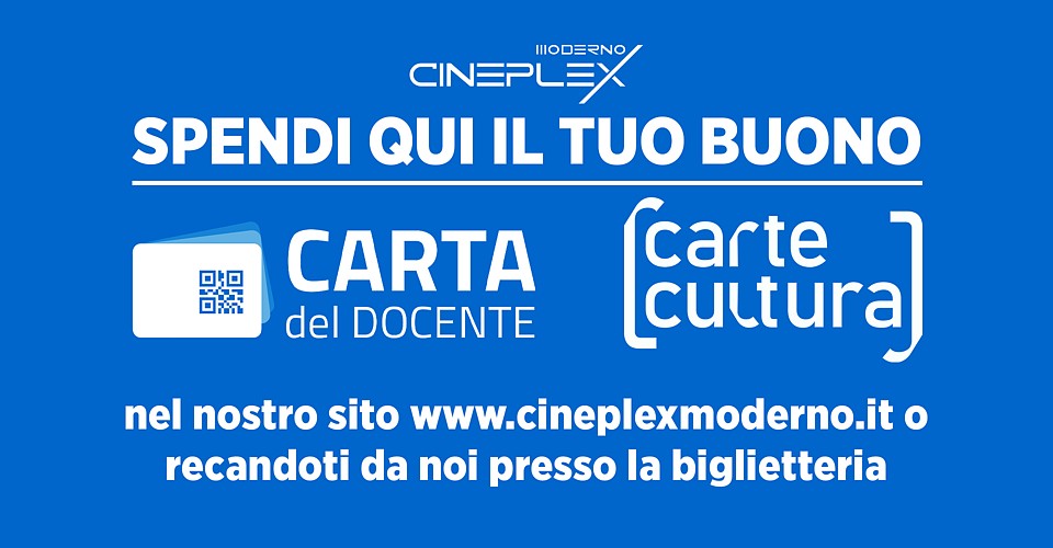 Le Carte Cultura e la Carta del Docente, iniziative del MiC, mettono a disposizione 500 euro a persona utilizzabili per vedere i film in programmazione al Cineplex Moderno